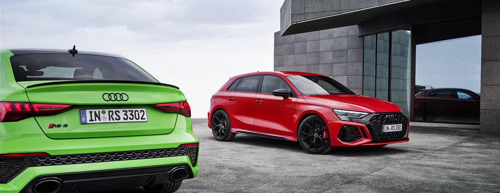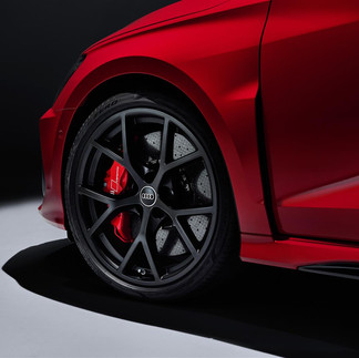 Del resto, aumenta la larghezza delle carreggiate (+3,3 cm davanti e +1 cm dietro) e si riduce l'altezza da terra (-2,5 cm) e il diametro dei cerchi in lega Audi Sport con design a 10 razze a Y è di 19 pollici di serie. In opzione, la nuova RS 3 può essere personalizzata con i cerchi RS a 5 razze a Y, gli pneumatici semi-slick Pirelli P Zero Trofeo R, il pacchetto look alluminio e gli inserti lungo le minigonne, le calotte degli specchietti e lo spoiler in fibre composite e poliuretano termoplastico.