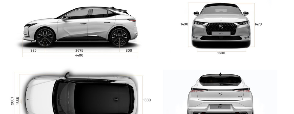 La nuova DS 4 2021 presenta dimensioni perfettamente in linea con quelle delle berline di segmento C, con una lunghezza di 4.400 mm, una larghezza di 1.830 mm e un'altezza di 1.470 mm. Il bagagliaio della nuova DS 4 2021 è tra i più ampi della categoria, grazie ad una capacità minima di 430 litri, accessibili tramite un portellone ad apertura elettrica senza mani.