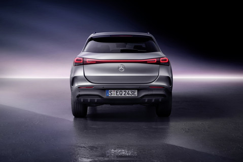 Ecco dunque una nuova calandra quasi totalmente chiusa, incorniciata da un pannello nero lucido che sottende anche i rinnovati proiettori a matrice di LED, caratterizzati da inserti blu e da una luce diurna che si sviluppa a tutta larghezza, sormontando la calandra. Inedito il disegno dei paraurti e dei badge EQA sulla fiancata, e tutto nuovo è anche il posteriore, dove i fanali si uniscono con una luce di posizione a tutta larghezza. La targa viene così spostata in basso nel paraurti, restituendo una nuova personalità a EQA.